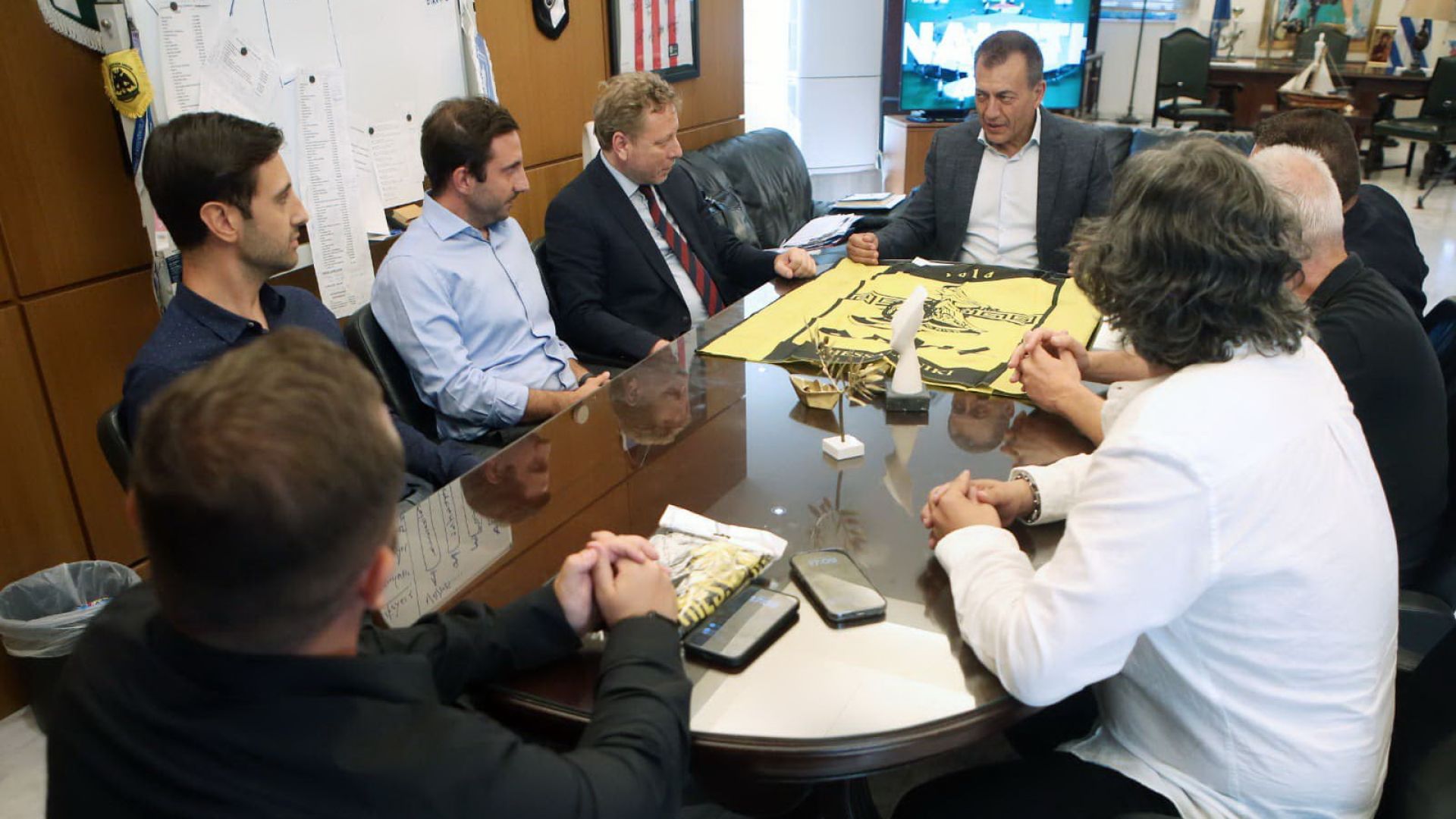 Τους συνεχάρη, τους ευχήθηκα «κάθε καλό» και συζητήσαμε τις προοπτικές που θα ανοίξουν επιπλέον για το ελληνικό μπάσκετ από την «αναγέννηση» του Άρη, ώστε να μπορεί να σταθεί δίπλα σε Ολυμπιακό Παναθηναϊκό, ΑΕΚ, ΠΑΟΚ”.