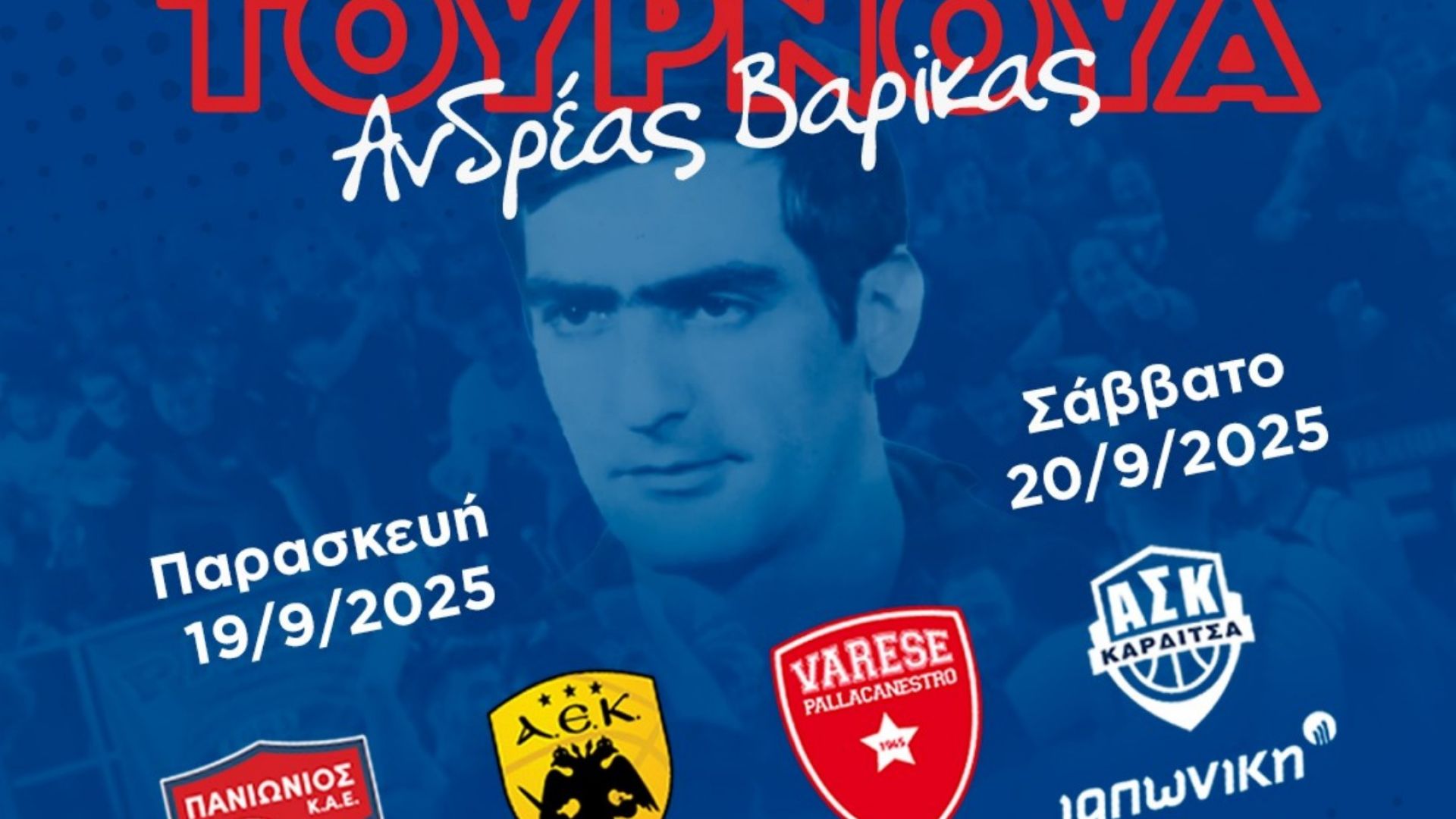 Ο Πανιώνιος ανακοίνωσε τις ομάδες που θα συμμετάσχουν στο τουνουά Ανδρέας Βαρίκας που θα γίνει στην Γλυφάδα στις 19 και 20 Σεπτεμβρίου και πρόκειται για τις ΑΕΚ, Καρδίτσα και Βαρέζε του Γιάννη Καστρίτη.