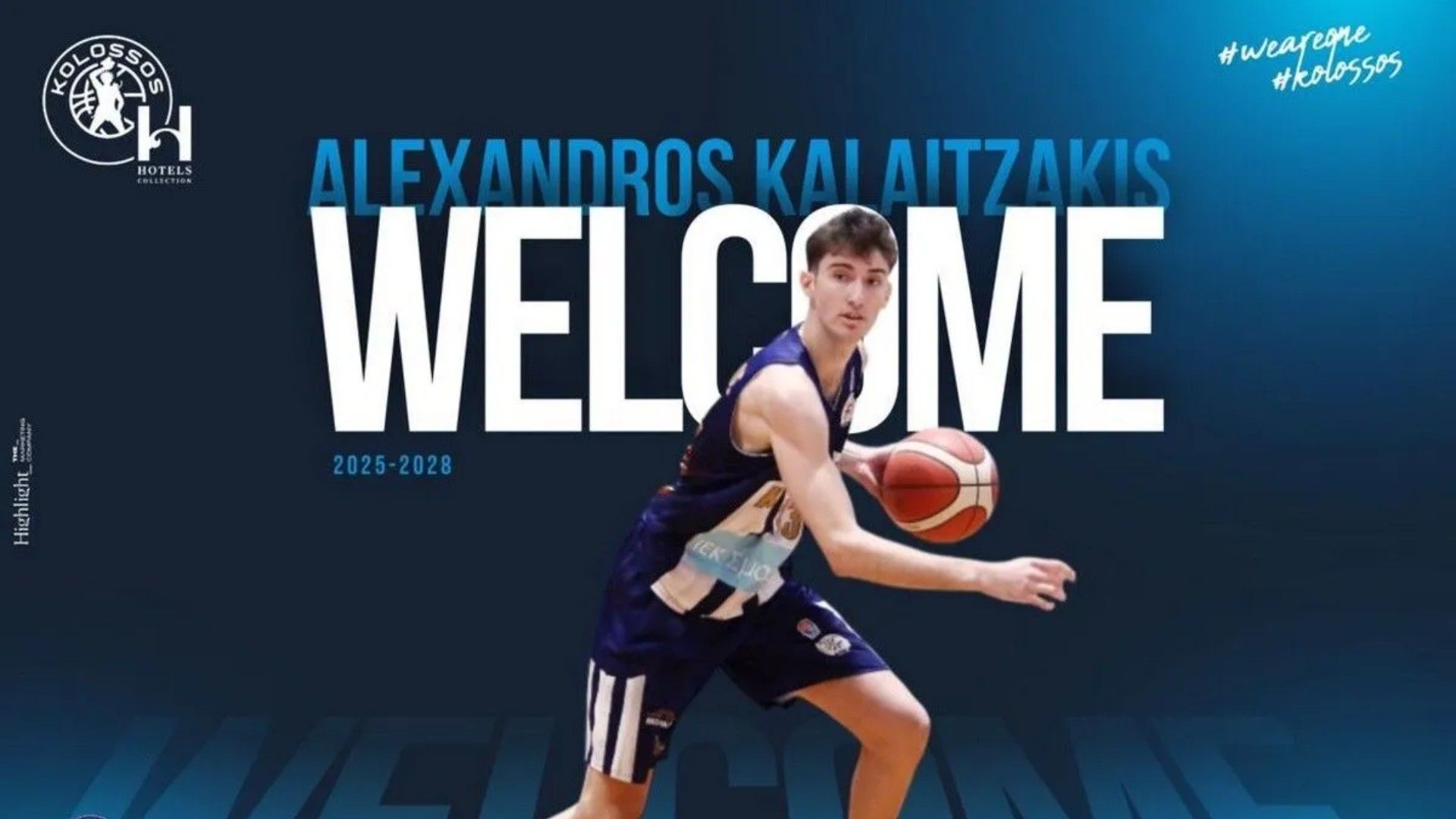 «Η ΚΑΕ Κολοσσός H Hotels Collection ανακοινώνει τη συμφωνία της με τον Αλέξανδρο Καλαϊτζάκη για τα επόμενα τρία χρόνια.