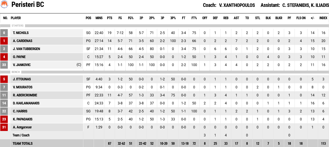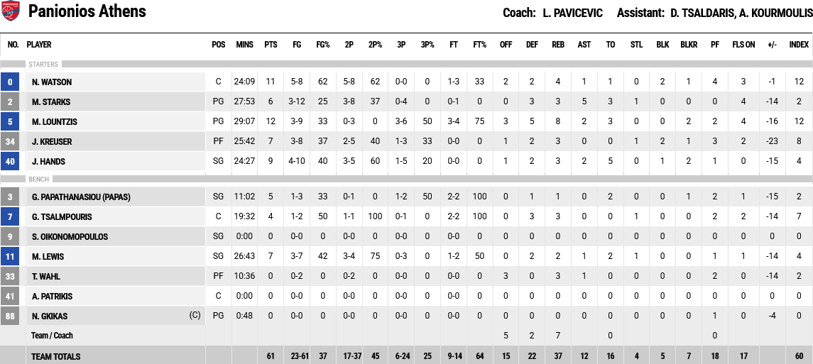 Ξεχώρισαν: 14 πόντους και επτά ασίστ είχε ο Καρντένας, ενώ από τον Πανιώνιο διασ΄ώθηκε ο Λούντζης με 12 πόντους και οκτώ ριμπάουντ.