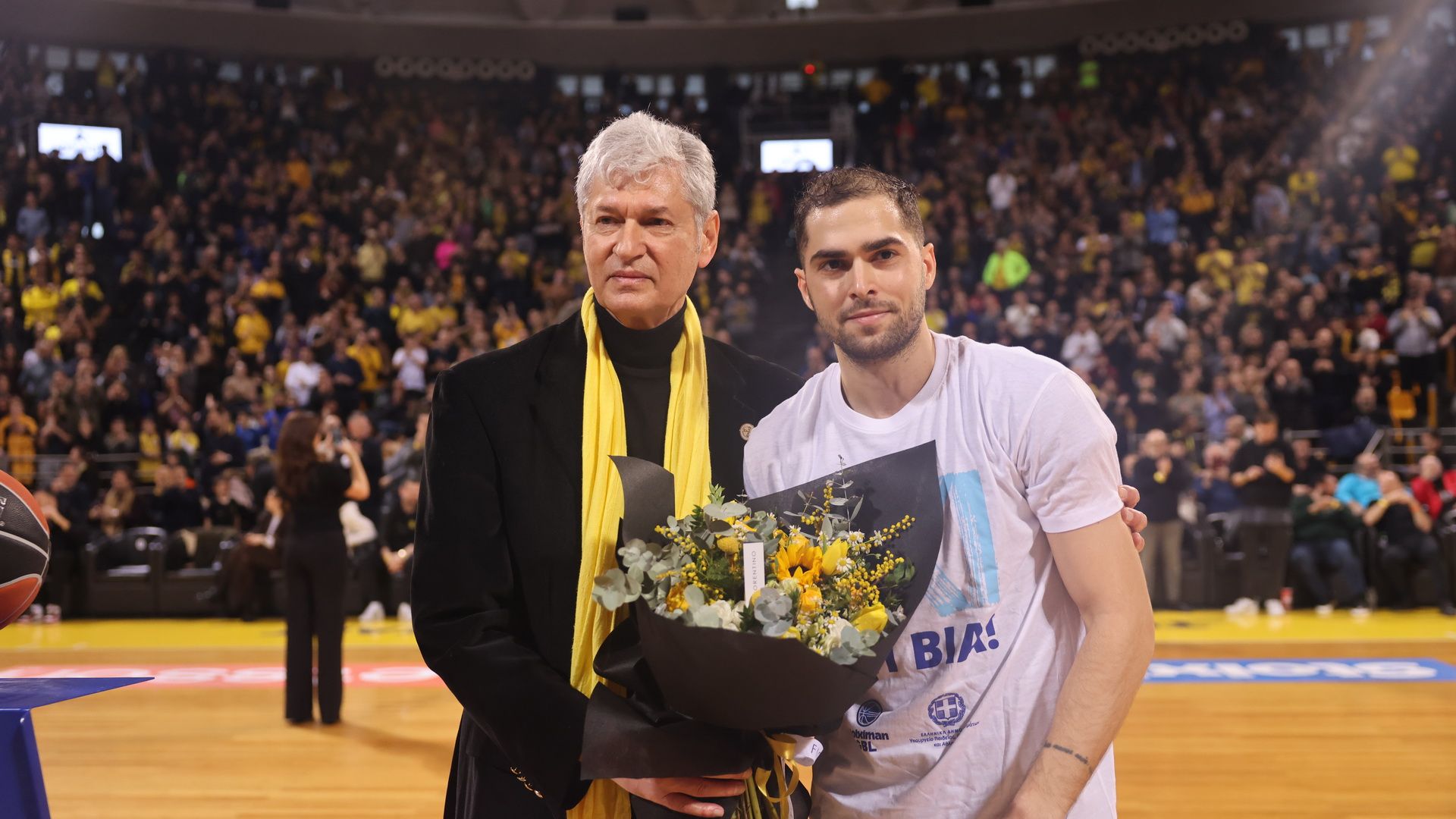 Ο Έλληνας γκαρντ συνεχίζει από το περασμένο καλοκαίρι την καριέρα του στον Παναθηναϊκό, με τον παίκτη να επιστρέφει, αυτή τη φορά με πράσινα, στο Αλεξάνδρειο, εισπράττοντας το θερμό χειροκρότημα της εξέδρας, αλλά και μία ανθοδέσμη, από τα χέρια του προέδρου του Άρη, Χάρη Παπαγεωργίου.