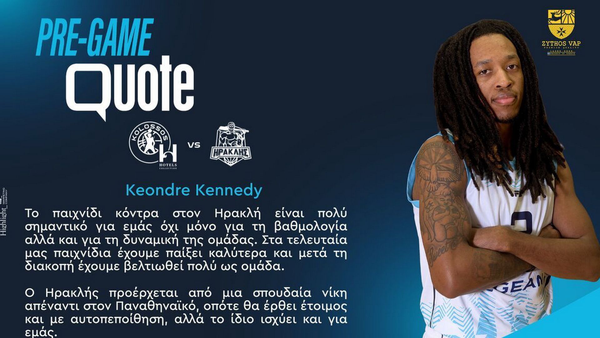 Ο Κολοσσός φιλοξενεί τον Ηρακλή (15/3, 12:45) για την 21η αγωνιστική της GBL και ο Κεόντρε Κένεντι, με δηλώσεις του στην επίσημη ιστοσελίδα της ομάδας της Ρόδου, μίλησε για το ματς απέναντι στον «Γηραιό».