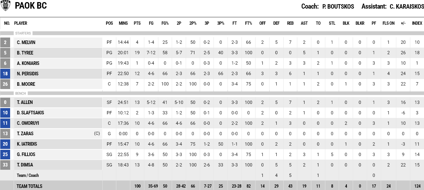 Ξεχώρισαν: Από τον ΠΑΟΚ διακρίθηκαν οι Άλλεν και Ντίμσα από 13 πόντους έκαστος. Από τον Προμηθέα σκόραραν οι Γκραντ και Κόλμαν από 16 και 11 πόντους αντίστοιχα.