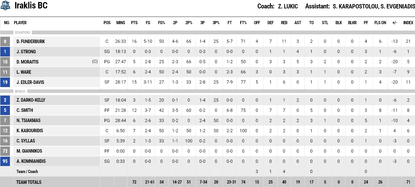 Ξεχώρισαν: Από το Μαρούσι επίσης έβαλαν οι Περάντες και Γουίλιαμς από 17 και 15 πόντους αντίστοιχα. Από τον Ηρακλή διακρίθηκαν οι Φάντεμπεργκ (11 ριμπάουντ και 3 ασίστ) και Έντλερ Ντέιβις με 16 και 15 πόντους.