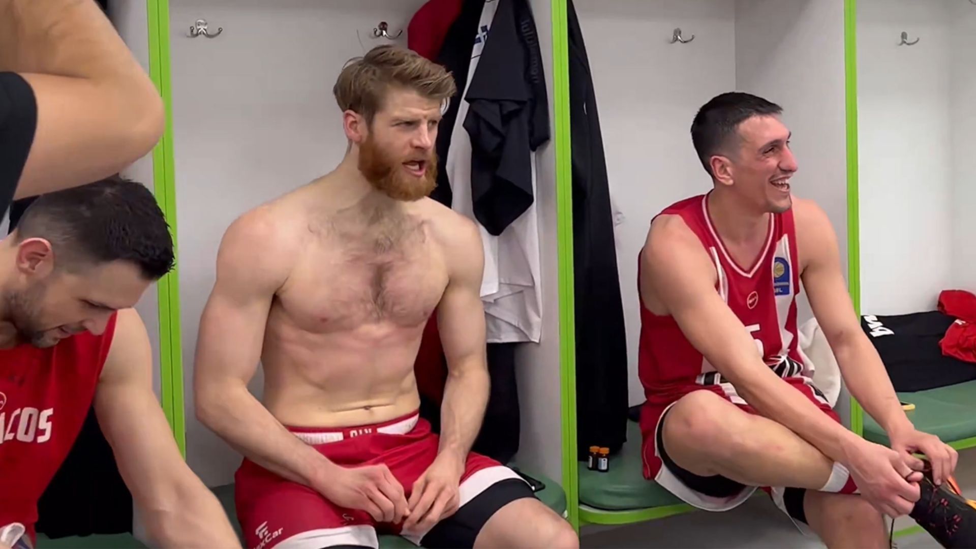 Η υπόσχεση για κέρασμα από τον Γιαννούλη Λαρεντζάκη -κατόπιν σχετικής προτροπής του Σάσα Βεζένκοφ- και το «μπράβο» του κόουτς για το διπλό στο ΟΑΚΑ.