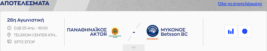 Έτσι, όπως έγινε γνωστό, το ματς της 26ης αγωνιστικής της GBL απέναντι στην Μύκονο, δεν θα διεξαχθεί την Κυριακή 26/4, όπως είχε αρχικά οριστεί, αλλά το Σάββατο 25/4 στις 16:00).