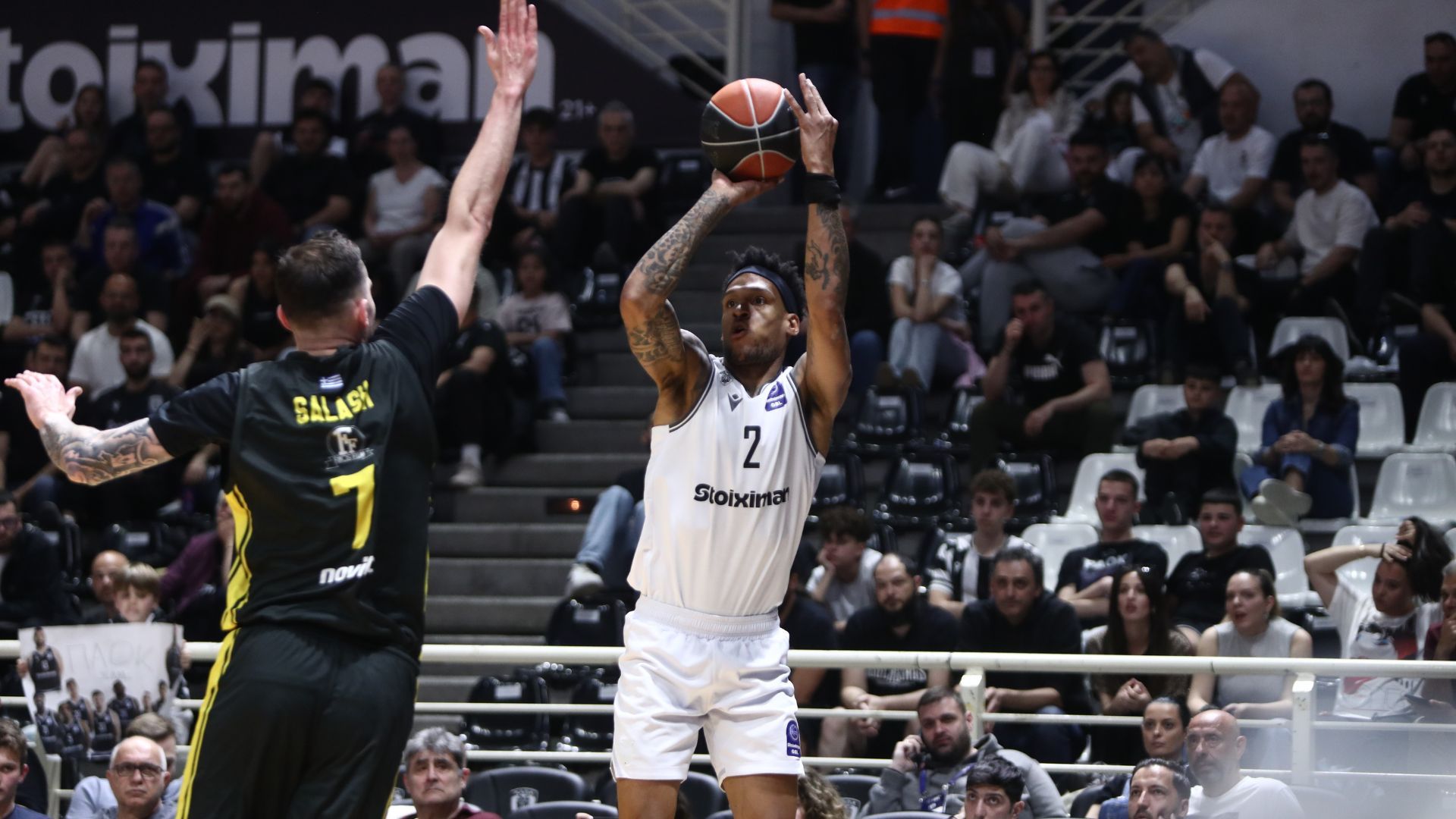 Η αναμέτρηση ξεκίνησε με καλό ρυθμό και από τις δύο ομάδες, με τους γηπεδούχους να χτίζουν προβάδισμα 7 πόντων με Μουρ και Άλεν, για το 17-10 στο 6'. Η εικόνα ήταν παρόμοια μέχρι και το τέλος της πρώτης περιόδου, καθώς οι προσπάθειες του Σάλας να μειώσει για το Μαρούσι δεν ήταν αρκετές, με τον Ταϊρί να γράφει το 28-20. Στο δεύτερο δεκάλεπτο ο υψηλός επιθετικός ρυθμός συνεχίστηκε και από τις δύο πλευρές, που έφταναν με σχετική ευκολία στο καλάθι. Γουόκερ και Ρέινολντς πάλεψαν να ξαναβάλουν τους φιλοξενούμενους στο παιχνίδι, αλλά τα καλάθια των Μουρ, Ομορούγι και Άλεν διατήρησαν τον ΠΑΟΚ στο προβάδισμα, με τους Θεσσαλονικείς να κρατούν το +8 ως και την ανάπαυλα, με το σκορ ημιχρόνου να είναι 54-46.
