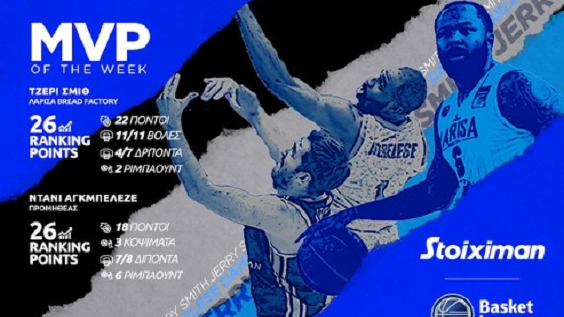 «Δύο MVP of the Week ανέδειξε η προηγούμενη εβδομάδα της Basket League. Πρόκειται για τους Τζέρι Σμιθ της Λάρισας Bread Factory και τον Ντάνι Αγκμπελίς του Προμηθέα!