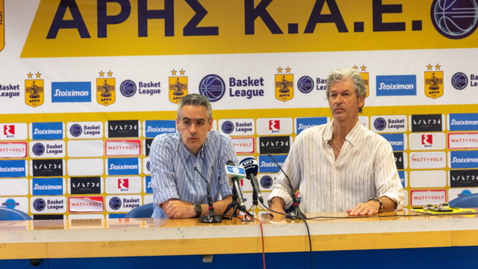 Για τη νέα σεζόν: «Δε φοβάμαι καθόλου για τη νέα σεζόν. Δεν είναι του χαρακτήρα μου να οριοθετώ βαθμολογική θέση. Δεν είμαι εδώ για να παλεύουμε για την παραμονή μας. Από την στιγμή που λέμε ότι φτιάχνουμε ομάδα χωρίς ban , προχωράμε έτσι. Αν δεν γίνει αυτό δεν υπάρχει άλλος δρόμος. Ήρθα με το σκεπτικό ότι θα λυθούν τα ban. Πιστεύω πως θα πάμε καλά. Χάθηκαν αρκετοί παίκτες, κάποιοι μας κοιτάν με δυσπιστία αλλά υπάρχουν και αρκετοί, Έλληνες και ξένοι που θέλουν να έρθουν στην ομάδα και να παίξουν εδώ. Ακόμα και ατζέντηδες αναγνωρίζουν την προσπάθεια του Άρη, δεν έχω αντιμετωπίσει ως τώρα κάποια άρνηση συνεργασίας».