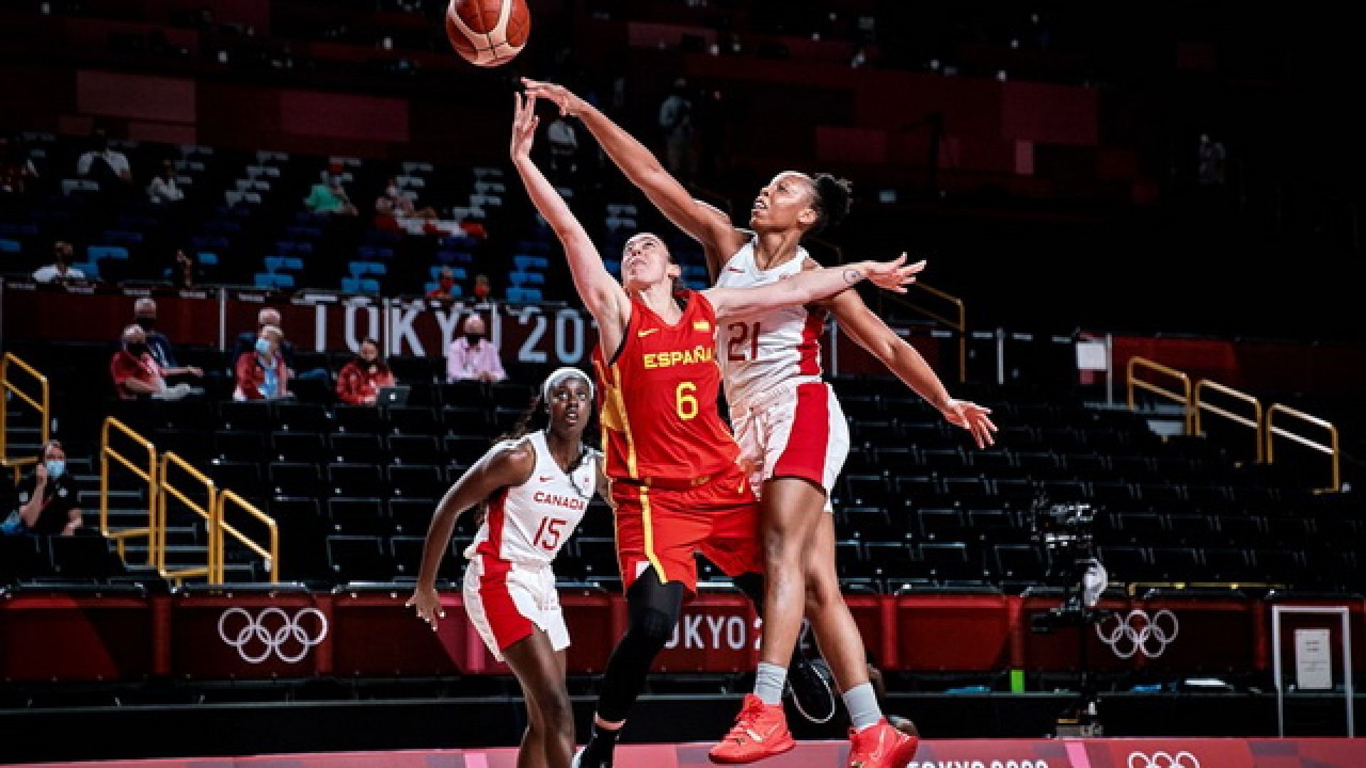 Την τρίτη της νίκη σε ισάριθμα παιχνίδια κατέκτησε η Ισπανία, που επιβλήθηκε και του Καναδά με 76-66 και προκρίθηκε ως αήττητη στα προημιτελικά τουΟλυμπιακού τουρνουά γυναικών.