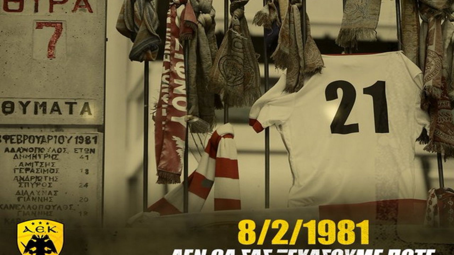 Φόρο τιμής στα 21 θύματα της Θύρας 7, την «μαύρη» 8/2/81, απόδωσε η ΚΑΕ ΑΕΚ, με αφορμή το προ 41 ετών τραγικό δυστύχημα του Σταδίου Καραϊσκάκη.