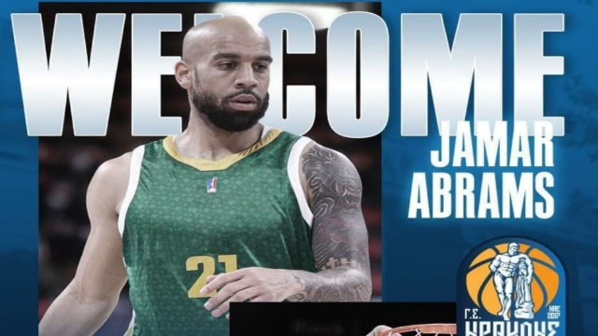 Η ΚΑΕ ΗΡΑΚΛΗΣ ανακοινώνει τη συμφωνία με τον Jamar Abrams μέχρι το τέλος της τρέχουσας αγωνιστικής περιόδου. Ο Αμερικανός παίκτης γεννήθηκε στις 21 Ιουνίου του 1989, στο Richmond της Virginia. Έχει ύψος 2,01 μ. και αγωνίζεται στις θέσεις των forward.