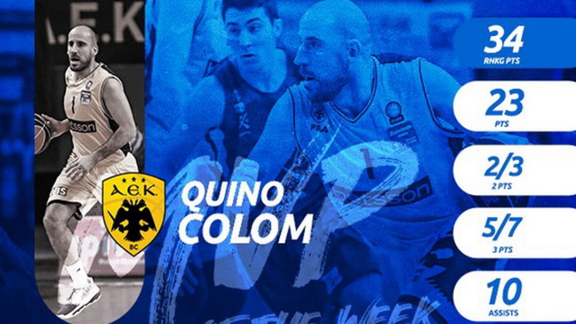 Η εξαιρετική εμφάνιση του Κίνο Κολόμ, στην νίκη της ΑΕΚ επί του Λαυρίου, τον έχρισαν πολυτιμότερο παίκτη της εβδομάδας στην Basket League.