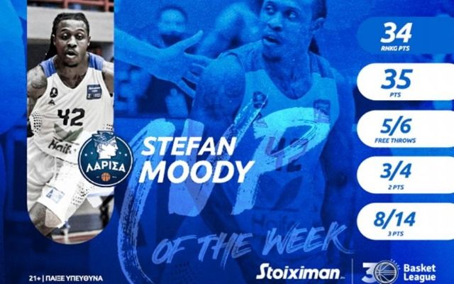 «Ο Στέφαν Μούντι αναδείχθηκε τελευταίος Stoiximan MVP of the Week για την κανονική περίοδο της Stoiximan Basket League με την εξαιρετική εμφάνιση του στην εντός έδρας νίκη της Λάρισας επί του Ιωνικού που έδωσε στην ομάδα του «κάμπου» την έκτη θέση της βαθμολογίας.
