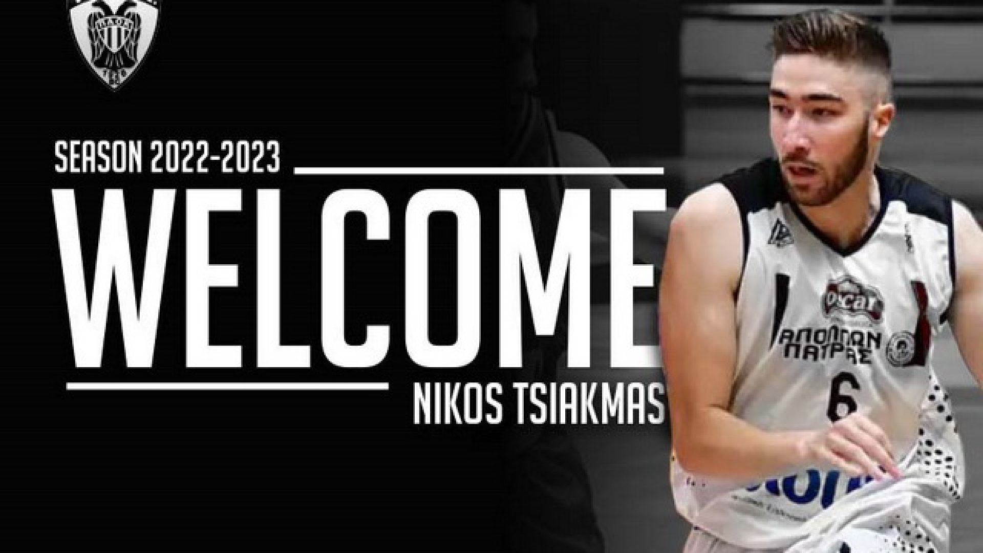 Η ΚΑΕ ΠΑΟΚ mateco ανακοινώνει τη συμφωνία με τον 23χρονο γκαρντ Νίκο Τσιακμά, ο οποίος θα αγωνιστεί στην ομάδα μας την αγωνιστική περίοδο 2022-2023. Καλωσορίζουμε στη μεγάλη οικογένεια του ΠΑΟΚ το Νίκο Τσιακμά, ένα ταλαντούχο Έλληνα αθλητή.