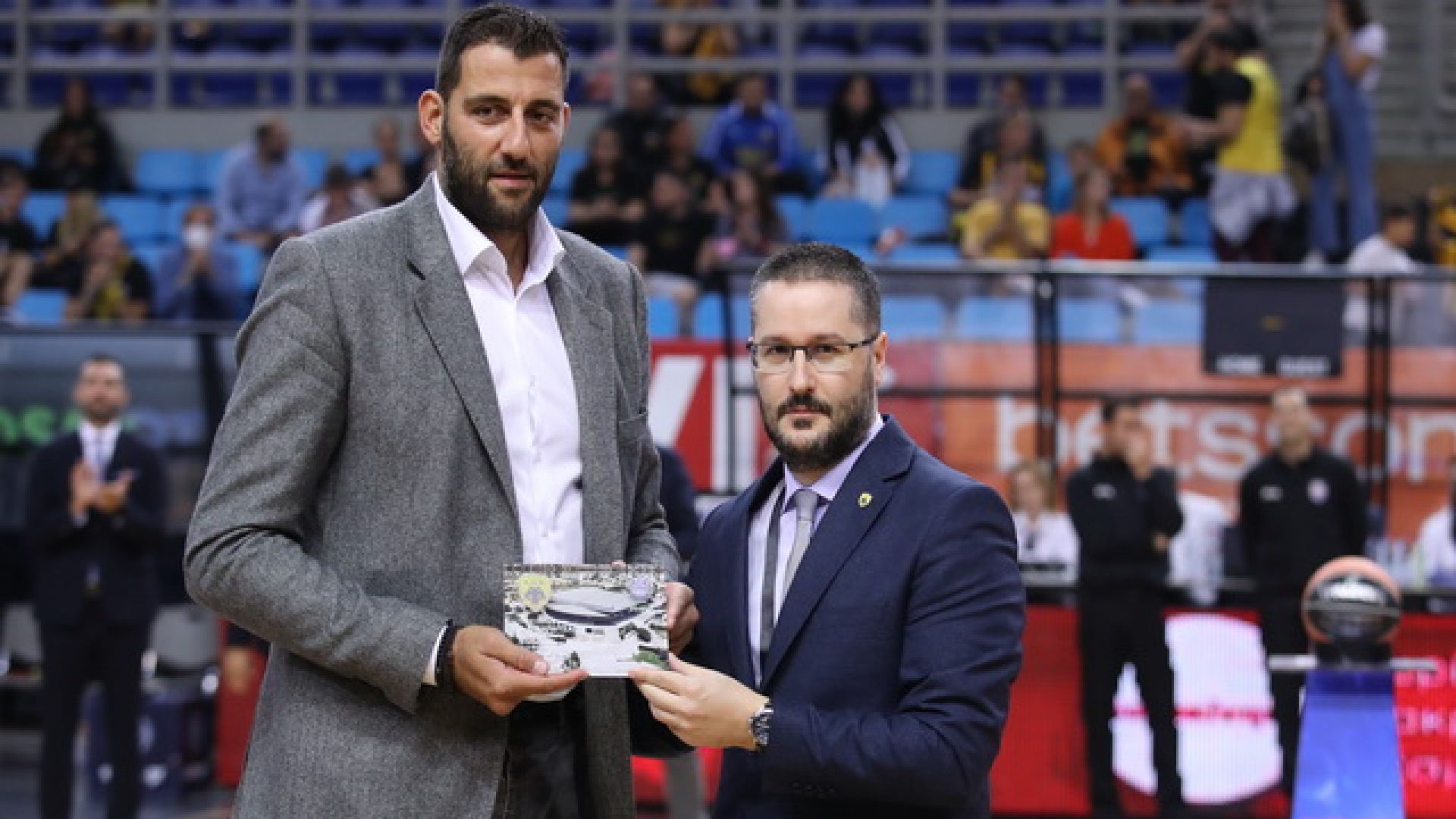 Στο περιθώριο του αγώνα της ΑΕΚ με την Καρδίτσα, η Ένωση τίμησε τον Γιάννη Μπουρούση, για την προσφορά του, τόσο στους «κιτρινόμαυρους», όσο και συνολικά στο ελληνικό μπάσκετ.