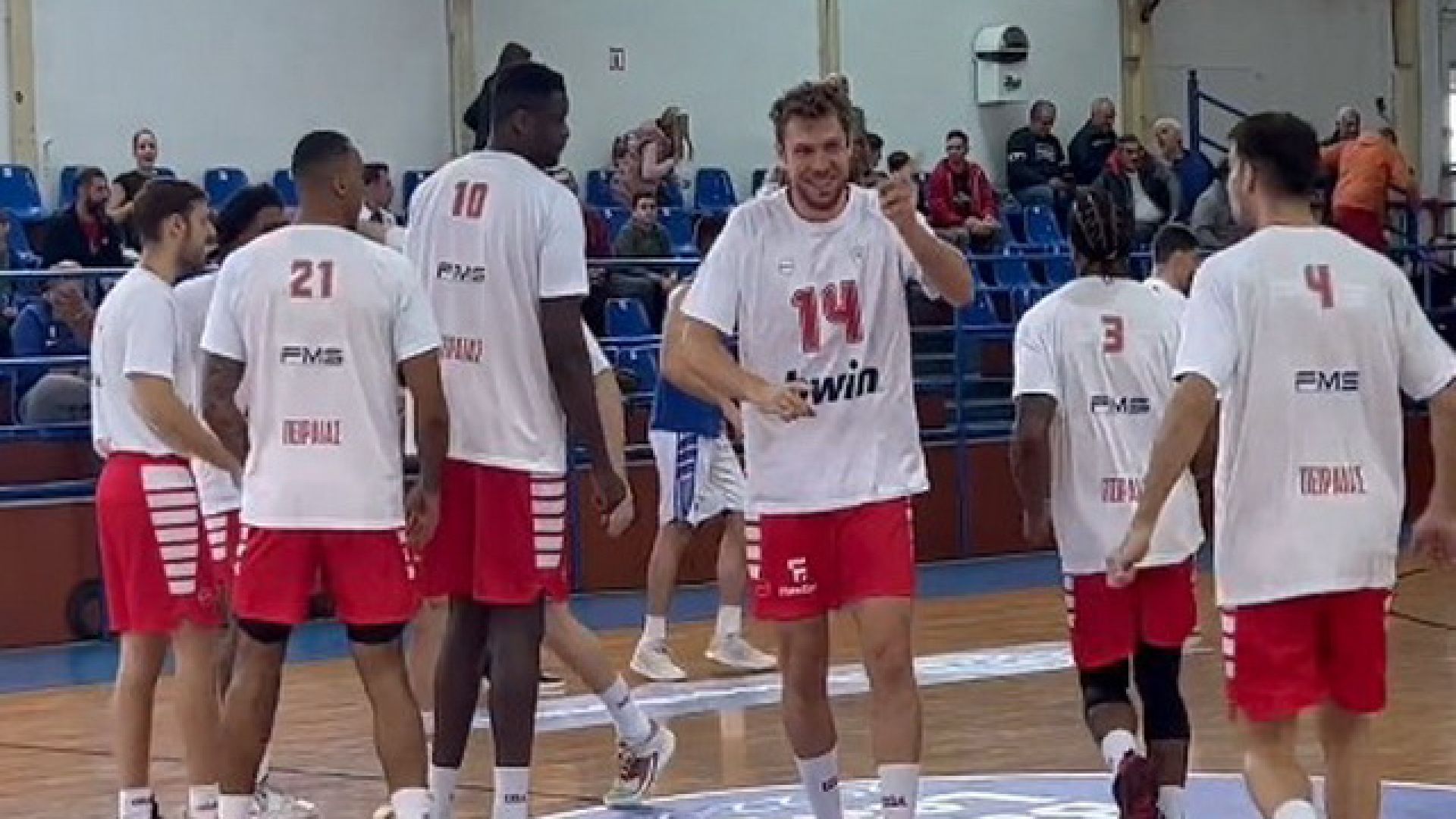 Παρά την προ ημερών ήττα από την Βαλένθια, τα χαμόγελα δεν έφυγαν από τα πρόσωπα των «ερυθρόλευκων», κατά την είσοδο των παικτών του Γιώργου Μπαρτζώκα στο παρκέ του «Πλάτωνα», ενόψει της έναρξης του αγώνα με τον Ιωνικό, για την 5η αγωνιστική της Basket League.