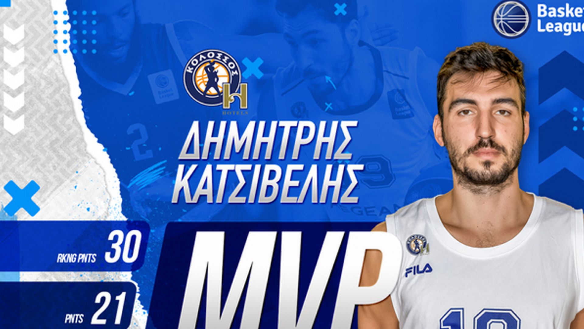 Ο Δημήτρης Κατσίβελης στην εντός έδρας νίκη του Κολοσσού H Hotels επί του Λαυρίου Megabolt, νίκη που ήταν η τρίτη διαδοχική των «θαλασσί» στο 31ο Επαγγελματικό Πρωτάθλημα, συγκέντρωσε 30 βαθμούς στο ranking (21 πόντοι με 4/6 βολές, 7/8 δίποντα, 1/3 τρίποντα, 6 ριμπάουντ, 6 ασίστ, 4 κερδισμένα φάουλ, 2 φάουλ εναντίον, 3 κλεψίματα και ένα λάθος) περισσότερους από κάθε άλλο παίκτη στις αναμετρήσεις της 11ης εβδομάδας της Basket League.