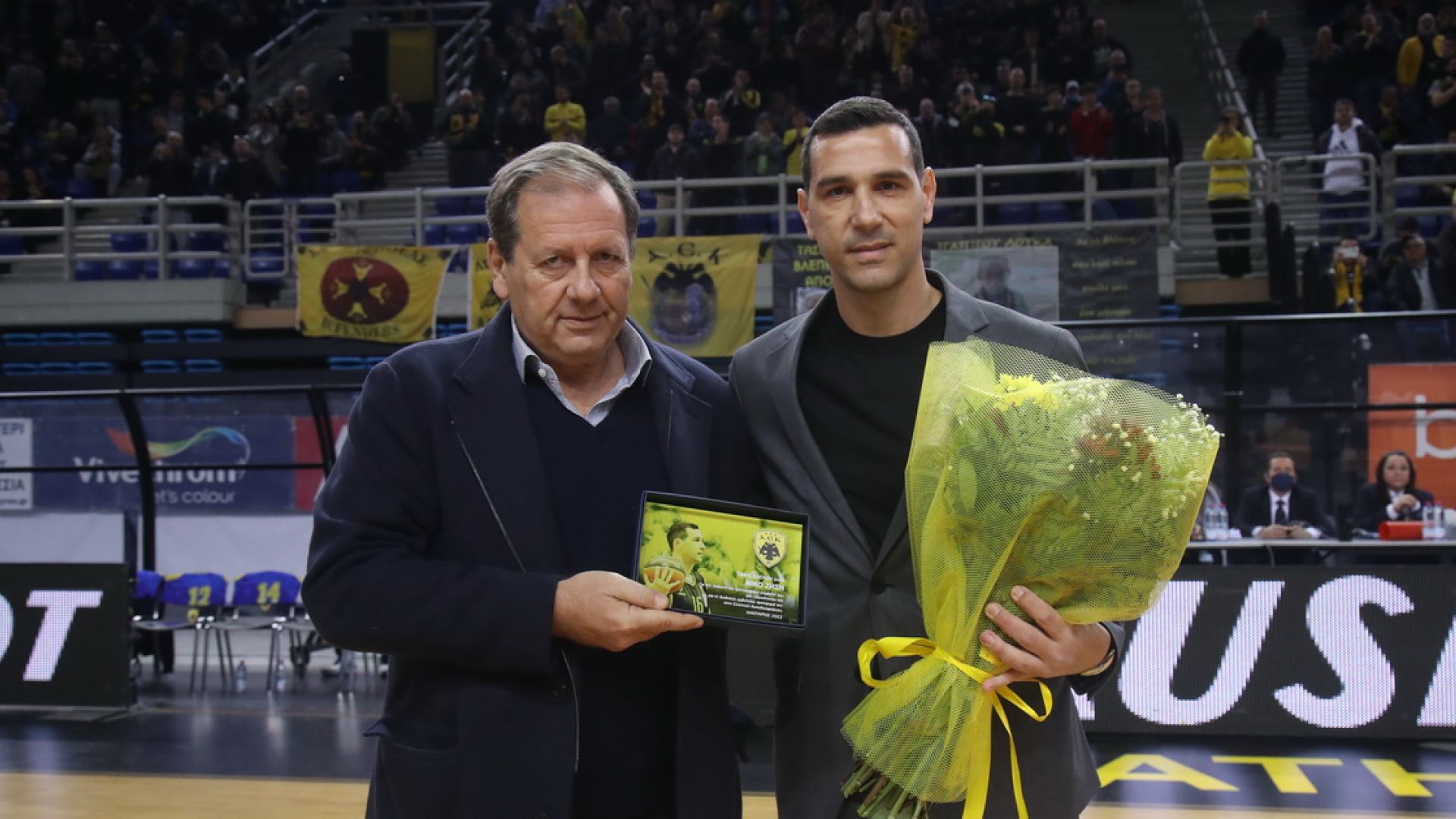 Όπως είχε προαναγγείλει η ΑΕΚ, πριν από την έναρξη του αγώνα με το Περιστέρι, η Ένωση τίμησε τον άλλοτε αρχηγό της, Νίκο Ζήση.
