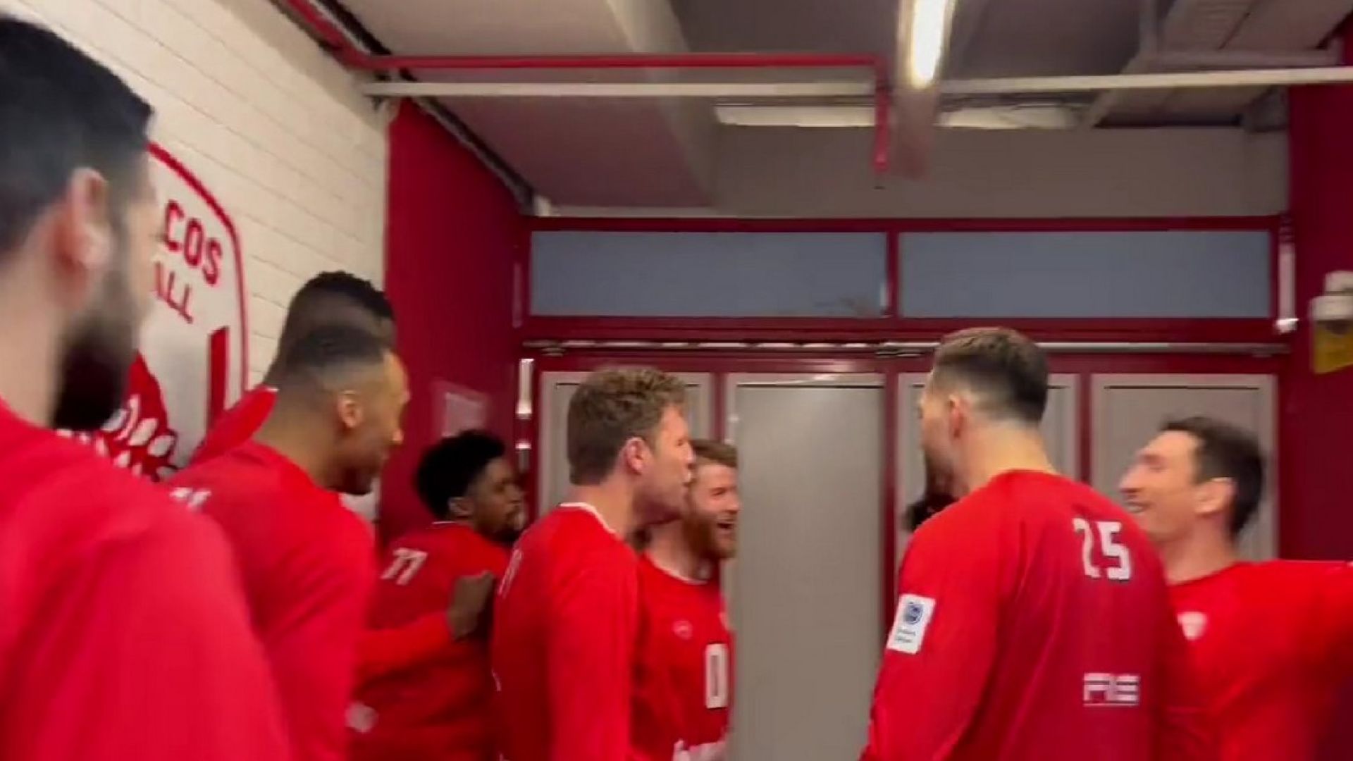 Έτοιμοι για το παιχνίδι με τον Προμηθέα είναι οι παίκτες του Ολυμπιακού, με τους ερυθρόλευκους να πραγματοποιούν το καθιερωμένο τελετουργικό πριν την είσοδό τους στον αγωνιστικό χώρο για την προθέρμανση και τον Σάσα Βεζένκοβ να δείχνει τις ικανότητες του και στο άλμα εις μήκος