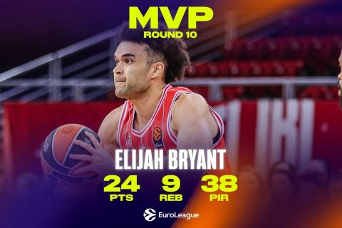 Στα χέρια του Ελάιτζα Μπράιαντ κατέληξε το βραβείο του κορυφαίου παίκτη της 10ης «στροφής» της Euroleague.