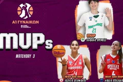 Δείτε αναλυτικά τις κορυφαίες παίκτριες ανά κατηγορία για την τρίτη αγωνιστική της Α1 Γυναικών.