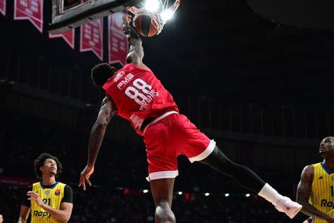 Το κάρφωμα του Ταϊρίκ Τζόουνς στην αναμέτρηση του Ολυμπιακού με τη Μακάμπι Τελ Αβίβ βρέθηκε στην κορυφή του Top-10 της 23ης αγωνιστικής της EuroLeague.