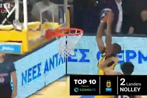 Το εντυπωσιακό κάρφωμα του Λάντερς Νόλεϊ, από το ντέρμπι του Άρη με τον ΠΑΟΚ, βρίσκεται στην κορυφή του top 10 της ημέρας, από την 8η αγωνιστική της GBL.