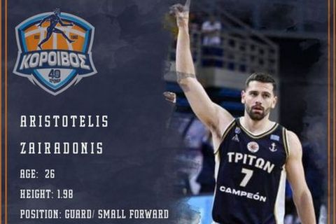 Την φανέλα του Κόροιβου θα φορά την νέα σεζόν ο Αριστοτέλης Ζαραϊδώνης, καθώς η ομάδα της Αμαλιάδας ανακοίνωσε την απόκτηση του πρώην παίκτη της Μεγαρίδας, με την οποία την περσινή σεζόν κατέγραψε 3,5 πόντους και 4,2 ριμπάουντ.