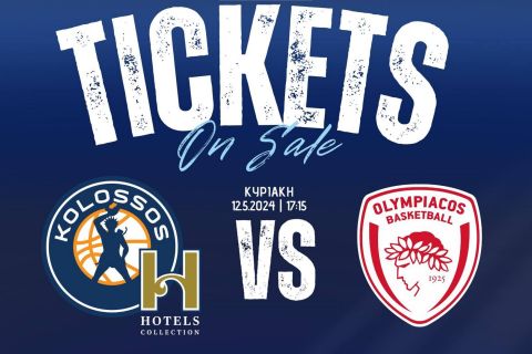 Ο Κολοσσός θα υποδεχθεί τον Ολυμπιακό στη Ρόδο για την 5η αγωνιστική του top - 6 της Basket League και τα εισιτήρια του εν λόγω αγώνα τίθενται στη διάθεση του κοινού.