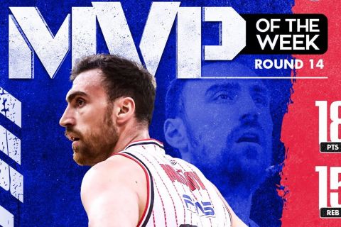 Ο Νίκολα Μιλουτίνοβ έπιασε τρομερή απόδοση κόντρα στον Κολοσσό Ρόδου και οι 31 μονάδες που συγκέντρωσε στο σύστημα αξιολόγησης τον αναδεικνύουν σε MVP της 14ης αγωνιστικής, πράγμα που συμβαίνει για δεύτερη φορά στην εφερινή Basket League.