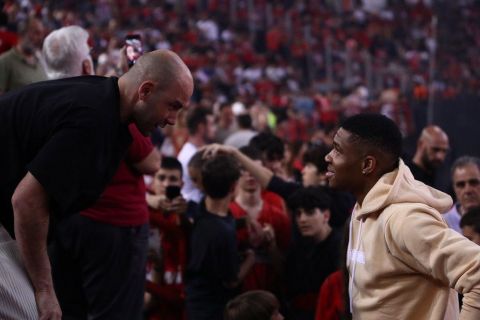 Ο Γιάννης Αντετοκούνμπο βρέθηκε στο ΣΕΦ για το Game 3 των τελικών της Basket League και συνομίλησε τόσο με το Βασίλη Σπανούλη, όσο και με τον Θοδωτή Παπαλουκά, με τον Έλληνα σταρ του NBA να τους χαρακτηρίζει θρύλους με ανάρτησή του στα social media.