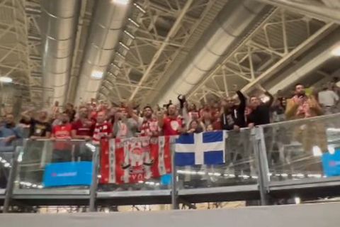 Ολυμπιακός: Έντονο το κόκκινο χρώμα στις εξέδρες της «Virtus Arena» (vid)