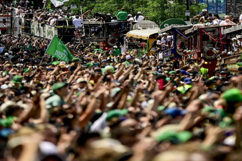 Αποθέωση από τους οπαδούς της δέχθηκαν οι παίκτες των Σέλτικς στην καθιερωμένη παρέλαση των πρωταθλητών στην Βοστόνη.