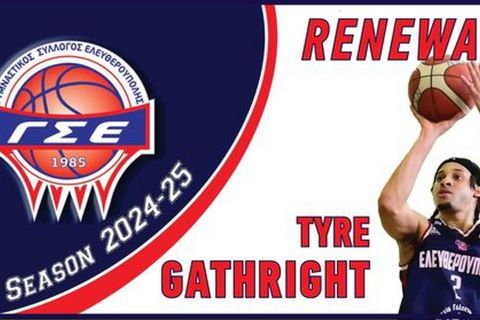 Την φανέλα της Ελευθερούπολης θα συνεχίσει να φορά ο Τάιρ Γκάθραϊτ, καθώς ο ΓΣΕ ανακοίνωσε την ανανέωση της συνεργασίας του με τον φετινό πρώτο του σκόρερ (16,7 πόντοι).