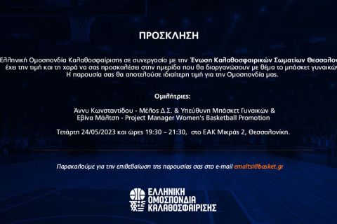 Η ΕΟΚ ενημέρωσε για την ημερίδα για το μπάσκετ γυναικών στην Θεσσαλονίκη, την Τετάρτη (24/5, 19:30).