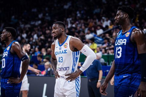 Αγωνία στο στρατόπεδο της Ελλάδας, αναφορικά με την κατάσταση της υγείας του Θανάση Αντετοκούνμπο, ο οποίος αποχώρησε τραυματίας από το παιχνίδι με τις ΗΠΑ.