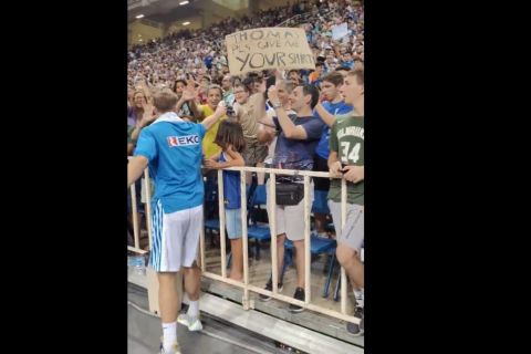 Πολλά ήταν τα ωραία΄ στιγμιότυπα του Τόμας Γουόκαπ με τη φανέλα της Εθνικής Ελλάδας, με τον γκαρντ του Ολυμπιακού να ικανοποιηεί το αίτημα μικρού φίλου από τις κερκίδες, δωρίζοντας τη φανέλα του.