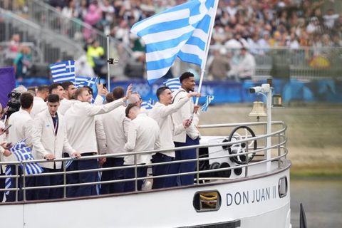 H Ελληνική Αποστολή έκανε την Έναρξη των Ολυμπιακών Αγώνων 2024 και μπήκε στο Σηκουάνα με σημαιοφόρους τον Γιάννη Αντετοκούνμπο και την Αντιγόνη Ντρισμπιώτη.