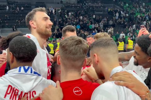 Ο Γιαννούλης Λαρεντζάκης ήταν εξαιρετικός στο «διπλό» του Ολυμπιακού στο ΟΑΚΑ, με τον διεθνή άσο να τελειώνει το ματς με 12 πόντους, έξι ασίστ και δύο ριμπάουντ σε 21’ και τους συμπαίκτες του να τον επιβραβεύουν με… φατούρο, αμέσως μετά το φινάλε της αναμέτρησης.
