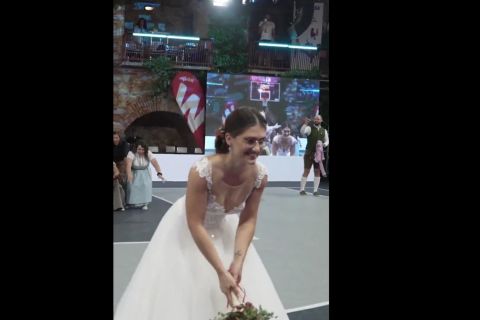 FIBA 3X3 - Νύφη σκοράρει ανάποδα με ανθοδέσμη για... τρεις (vid)