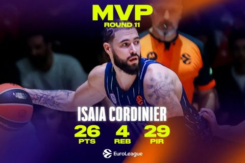 Euroleague: MVP της 11ης αγωνιστικής ο Κορντινιέ (pic, vid)