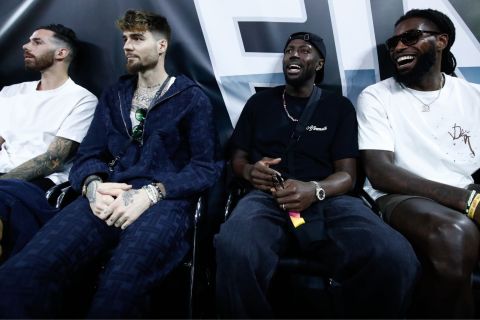 Με χρώμα «αιωνίων» ο τελικός του Basketball Champions League στη SUNEL Arena, καθώς ο άσος του Ολυμπιακο΄υ Λούκα Βιλντόσα, μαζί με τους παίκτες του Παναθηναϊκού Χουάντσο Ερνανγκόμεζ, Τζέριαν Γκραντ και Ματίας Λεσόρ παρακολουθούν το ματς, με τον Γάλλο σέντερ ωστόσο να τα... ακούει από την εξέδρα.