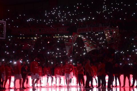 Ο Ολυμπιακός επικράτησε του Παναθηναϊκού με 76-74, με τους οπαδούς των «ερυθρόλευκων» να δημιουργούν εντυπωσιακή ατμόσφαιρα από την… παρουσίαση των δύο ομάδων και τους Πειραιώτες, να γιορτάζουν την 8η σερί ευρωπαϊκή τους νίκη επί του «τριφυλλιού», με στίχους του συγκροτήματος Coldplay.