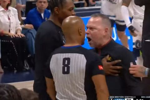 Καθόλου δεν άρεσαν οι αποφάσεις των διαιτητών στον προπονητή των Νάγκετς στο Game 2 με τους Τίμπεργουλβς, με τον Μάικλ Μαλόουν να κολλά το προσωπό του σε έναν από τους διαιτητές και μάλιστα φωνάζοντας πολύ δυνατά, χωρίς ωστόσο να χρεώνεται με τεχνική ποινή.