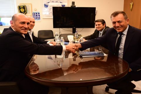 Η συνάντηση των προέδρων του Ολυμπιακού Παναγιώτη και Γιώργου Αγγελόπουλου, με τον Γιάννη Βρούτση ολοκληρώθηκε.
