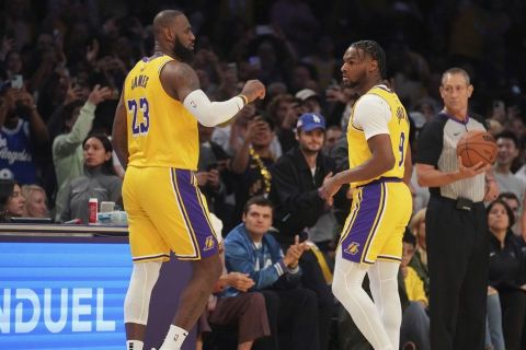 Οι Λέικερς επικράτησαν των Τίμπεργουλβς με 110-103, με τους ΛεΜπρόν και Μπρόνι Τζέιμς να βρίσκονται από κοινού στο παρκέ σε μια ιστορική στιγμή του NBA, καθώς για πρώτη φορά σε επίσημο παιχνίδι πατέρας και γιος είναι συμπαίκτες και μάλιστα στην ίδια πεντάδα.