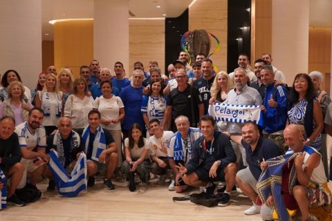 Οι φανατικοί φίλαθλοι της Εθνικής Ελλάδας, Πελαργοί επισκέφτηκαν την αποστολή της ελληνικής ομάδας στο ξενοδοχείο που διαμένει στη Μανίλα θέλοντας να τονώσουν το ηθικό των παικτών εν όψει της συνέχειας του Παγκοσμίου Κυπέλλου 2023.