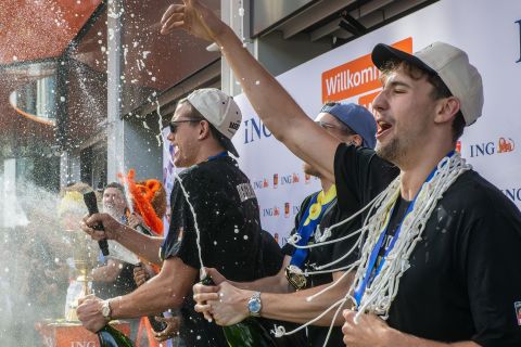 Οι διεθνείς παίκτες της Εθνικής Γερμανίας, Αντρέας Ομπστ, Άιζακ Μπόνγκα και Νιλς Γκιφάι πανηγύρισαν και στο Oktoberfest για την κατάκτηση του χρυσού μεταλλίου της Γερμανίας στο Παγκόσμιο Κύπελλο 2023.