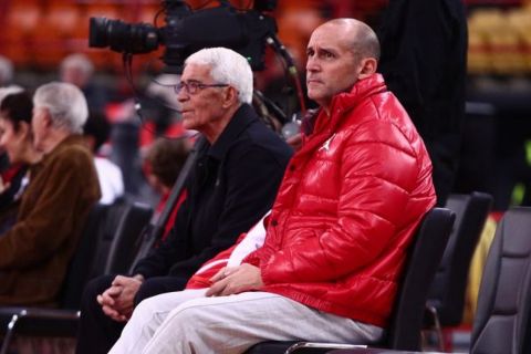 Ολυμπιακός – Στο ΣΕΦ με ολοκόκκινο μπουφάν ο Π. Αγγελόπουλος